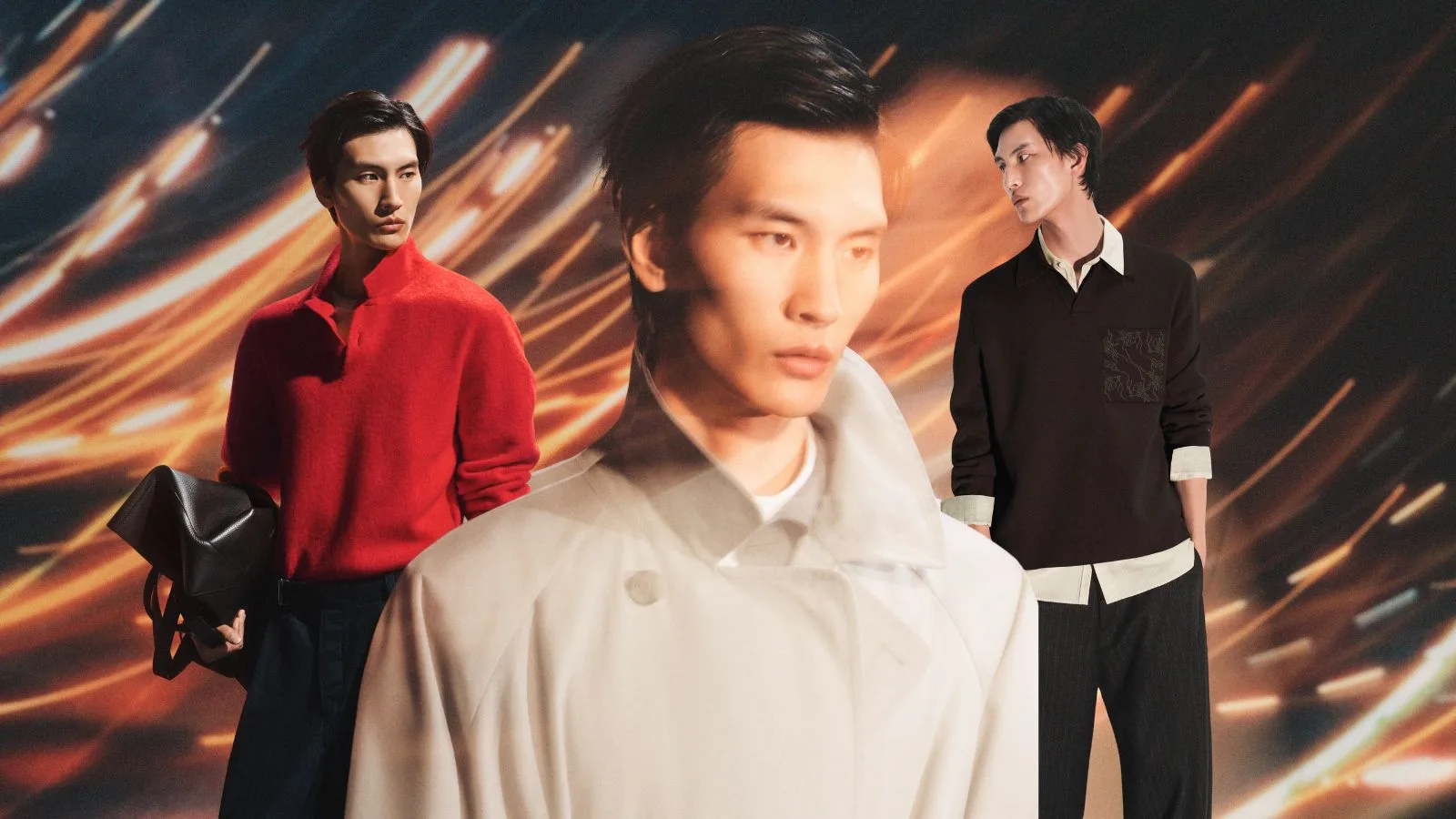 Elemen linear dalam pergerakan dipaparkan pada aksesori seperti skaf sutera, item kapas dan lapisan bulu lembut, mencipta interaksi garis dan bentuk yang halus, namun signifikan sebagai satu penghargaan kepada permulaan tahun baharu.